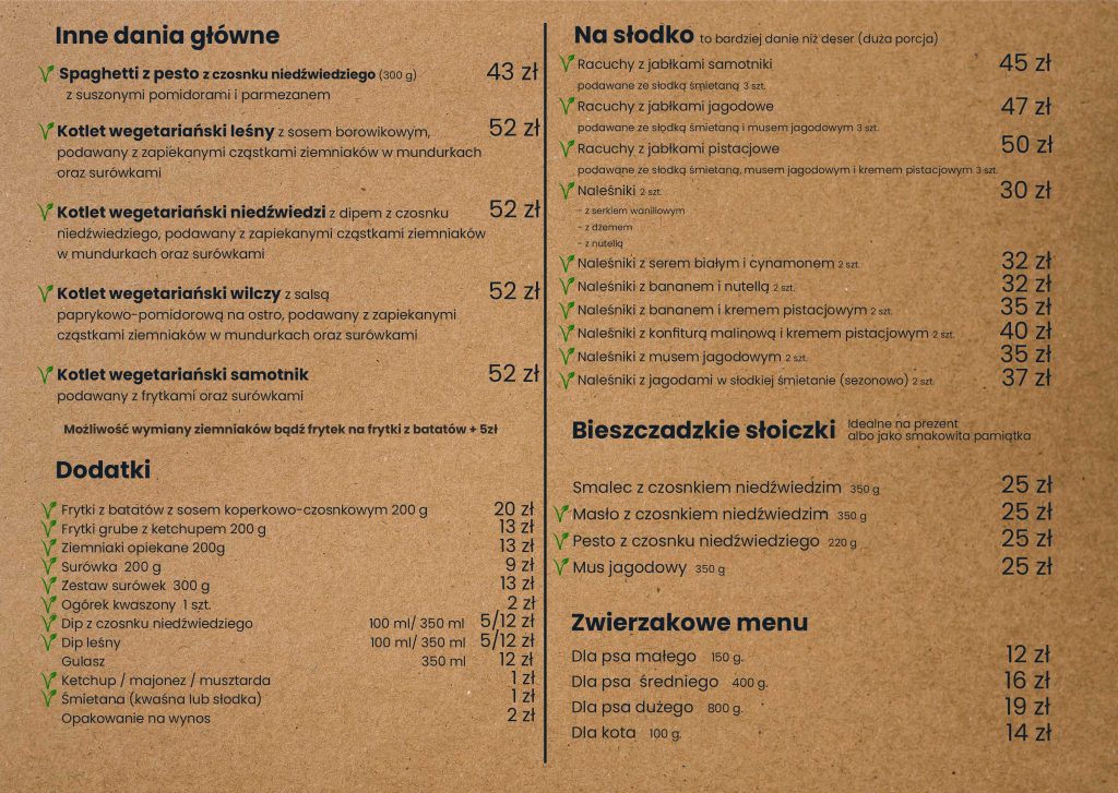 Drodzy Goście Bieszczad, zapraszamy do skorzystania z naszej oferty wyżywienia.